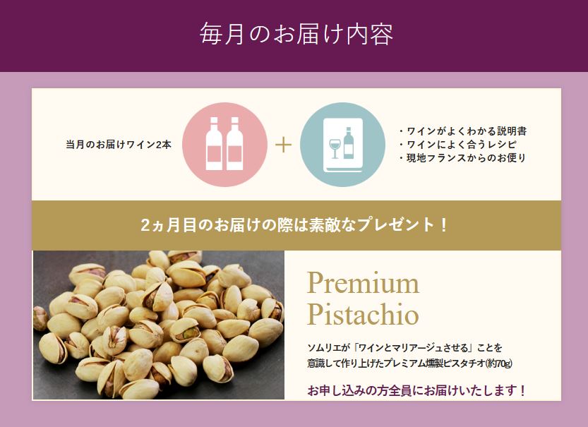 ・毎月上旬にワインを2本、ご指定の場所にお届けします!